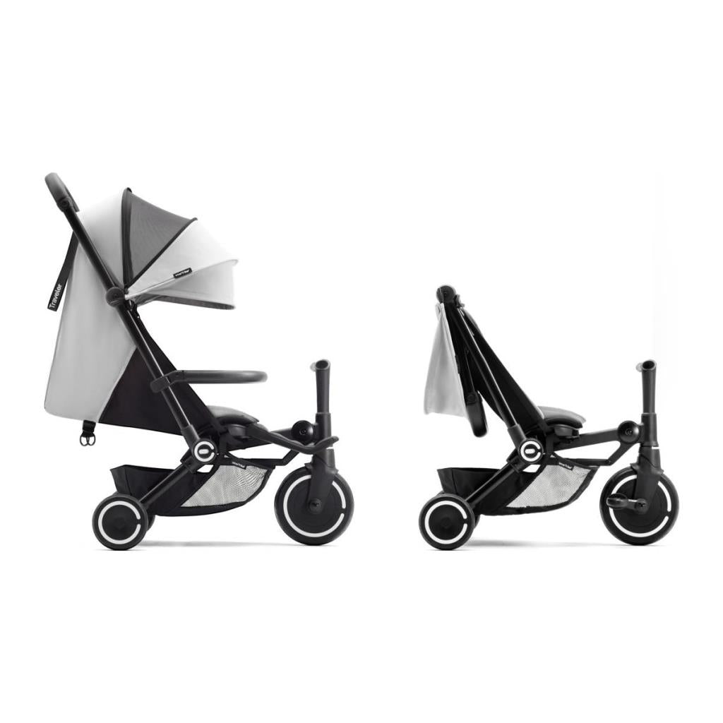 Yenilikçi katlama mekanizması ile SmarTrike Traveler, kolayca katlanarak taşınabilir. Ayrıca, bebek arabasından tek bir düğmeye basarak bisiklete dönüştürülür.